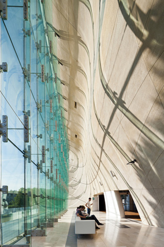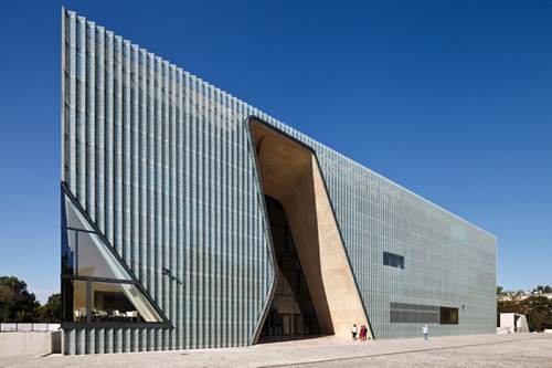 波兰犹太人历史博物馆位于华沙一处二战前犹太人聚居地的中心地带,纳粹曾将此处改造为华沙犹太人区。博物馆关注的不仅是大屠杀,还关注大屠杀试图掩埋的犹太人在波兰的800多年历史。由芬兰建筑师Ralner Mahlamaeki和llmar LahdeLma设计的博物馆有着象征性的开裂的立面,朝着波浪状的墙体打开。
