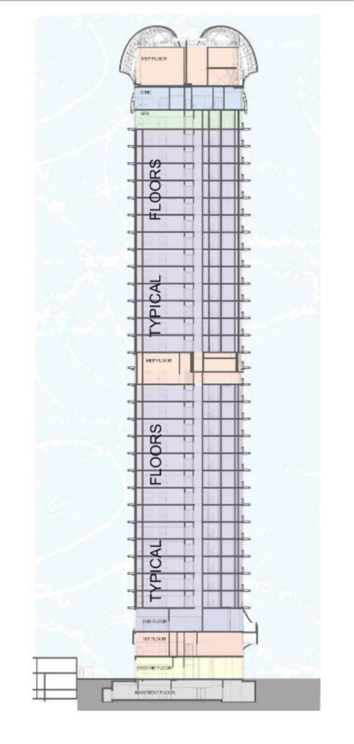 每间客房的转角犹如羽毛编织的纹理,延伸了建筑的空间体验。塔楼顶部采用两艘倒置的独木舟形式,突出航海主题。钢结构铝板外墙在迪拜阳光的照耀下闪闪发光,营造出海市蜃楼般的视觉效果。