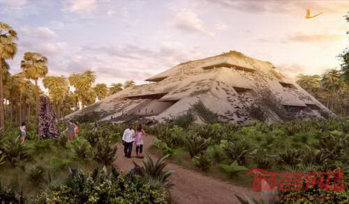 设计师参考了玛雅金字塔的结构属性,这种结构采用当地石灰岩材料,能够承受飓风灾害影响。项目的巨大体量体现了古代建筑的当代抽象版本。