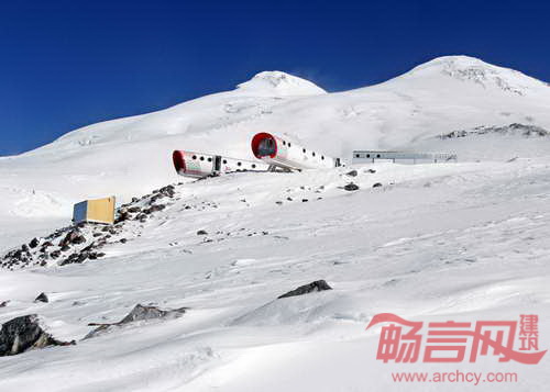 LEAPrus 3912峰顶酒店由四条预制玻璃纤维管组成,已于近日开业。酒店位于欧洲最高峰——艾布鲁斯峰南侧,由LEAPfactory公司设计,该设计团队专注于设计位于极端环境条件下的建筑。酒店所在高山隶属于俄罗斯高加索地区,是一座休眠火山,海拔5642米。酒店为49名登山者提供住宿。两条纤维管组成的空间内容纳了卧室和休息室,其他两条分别提供了餐厅和员工住宿空间,以及厕所和浴室。四个住宿管道均在意大利制造,使用了复合树脂纤维夹芯板材料。