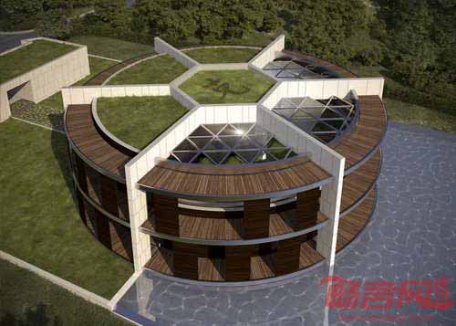 西班牙建筑师Luis de Garrido为阿根廷球星梅西设计了一栋概念化住宅。这栋两层生态住宅外形如同一枚足球。项目位于巴塞罗那以北36公里处,设计旨在反映主人的兴趣的生活方式等要求。俯瞰角度观察,足球形结构中央带有一个六边形,延伸出六面墙壁。场地的一侧道路穿过草坪,连通了入口和建筑大门。建筑的背面设有一个大型游泳池。设计方案中住宅的一层和二层周边设置了木质地面。绝大部分屋面覆盖了草皮,房屋背部是玻璃屋面。