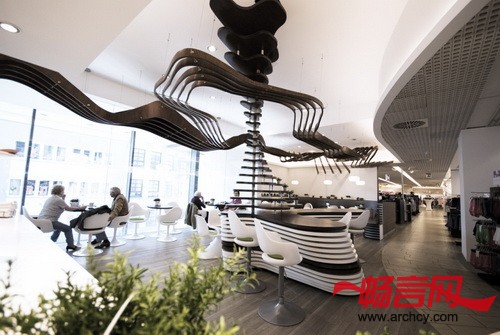 这个小餐馆位于德国奥斯纳布吕克市的LENGERMANN & TRIESCHMANN百货商场里,它是由德国的Jörn Fröhlich设计公司(位于柏林,主攻剧院和零售商场建筑的设计)和土耳其Siddik Erdogan室内设计公司(位于伊兹密尔,是一家专业的室内设计公司)共同完成的。