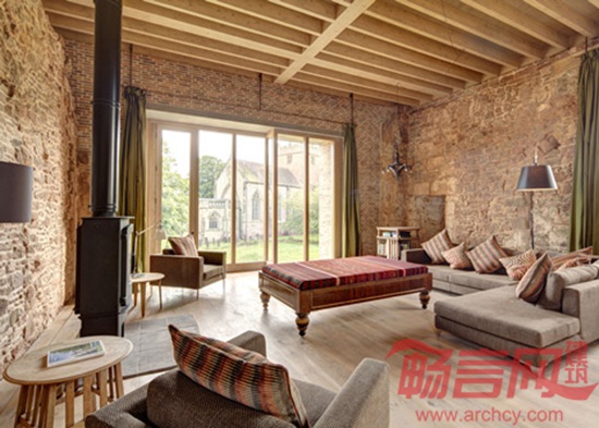 翻新后的城堡一层共有4个卧室,可容纳8人。橡木楼梯通向二层起居室,设计师新开了两扇玻璃窗,为室内添加了自然采光。