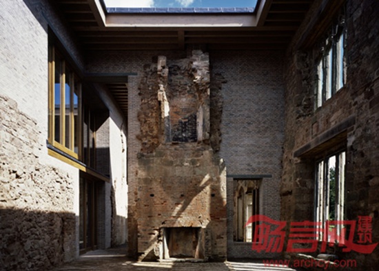 建筑师设计了能够容纳在砂岩墙壁之中的两层住宅,其间利用粘土砖填充,营造出新旧结构的鲜明反差。天花和地板采用胶合板,在城堡最古老的部分创造出起居室和卧室。