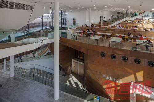 维也纳经济大学礼堂设计旨在体现多种相互关系,礼堂不仅是一座建筑,同时也是促进交流的学习平台,为不同的班级活动提供场地。设计诉求具有不同层次和尺度,但都是为了实现“过程即是结果”的设计意图。设计师认为现代礼堂必须有助于维持师生的好奇心,不设置空间障碍,使幻想自由地驰骋。