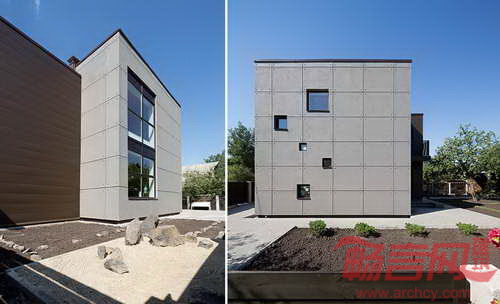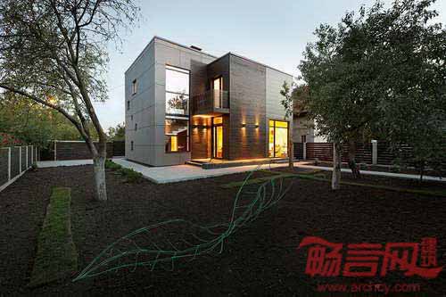 设计师坚持了简单的设计理念,赋予建筑彩色墙壁、混凝土楼梯、木质天花板、木质和瓷砖地面。设计师Dmytro Grek制作的铜质雕塑使室外环境更为优美,也为室内增添了一道景致。