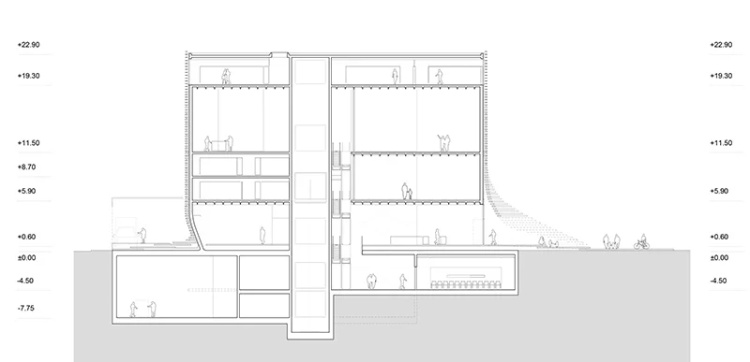 维也纳Jadric建筑事务所的方案赢得了首尔摄影艺术博物馆的竞赛优胜。方案得到了韩国本土1990 Uao事务所的合作,具有动感、扭曲的形态,旨在营造雕塑般的地标。为设计该博物馆,Jadric建筑事务所思索了摄影同建筑之间的关系。建筑物底部扭曲的形态象征着摄影快照,同时使建筑向公共空间敞开,成为新规划的“文化英里”的重要景点。临街立面踏步有效地将博物馆同人行道融合起来,吸引游客进入馆内,并为居民提供聚集和停留的宽敞公共空间。