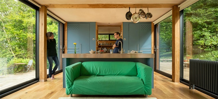 Invisible Studio主持建筑师Piers Taylor翻新了英格兰西南部的自宅。项目达到特殊的隔热、气密性和独立性。原址名为“月光”,建于1786年,是附近一所大型乡村别墅学校。2002年,建筑扩建,从此建筑师和家人就住在这里。在此期间,建筑师在房子周围的林地里建造了其他项目,包括自己的工作室。