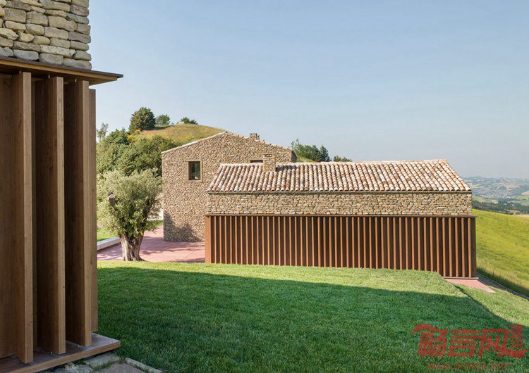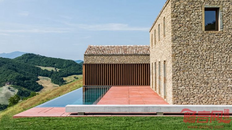意大利GGA工作室对Marche一座老旧的山顶建筑实施了改造。AP住宅位于亚平宁北部山区,所在城市Urbino拥有城墙。住宅坐落在当地最高的山峰之一的顶部。场地上曾建有乡间隐室,年代可追溯到中世纪。设计师选择将新建建筑树立在古老的遗址上方,通过山下隐藏的地下层连接二者。设计师表示,住宅核心自成一体,在景观中营造了焦点,而新建筑和历史分层结构间的共情对话也由此恢复。