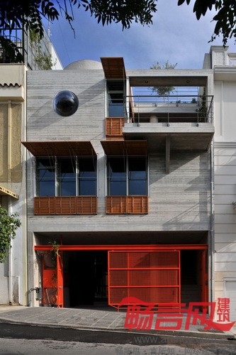 在希腊雅典的Filopappos小山脚下,有一片老街区,这里有一座盒子形状的房子。由于建在两座老房子之间的夹缝中,其占地面积比较狭小。房子正面临街,北面还有一个小院子。