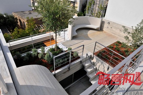 3.室外区域种植了很多绿色植物,屋顶还种植了青草和小型树木(如橄榄树和石榴树等),打造出了一个绿色屋顶。