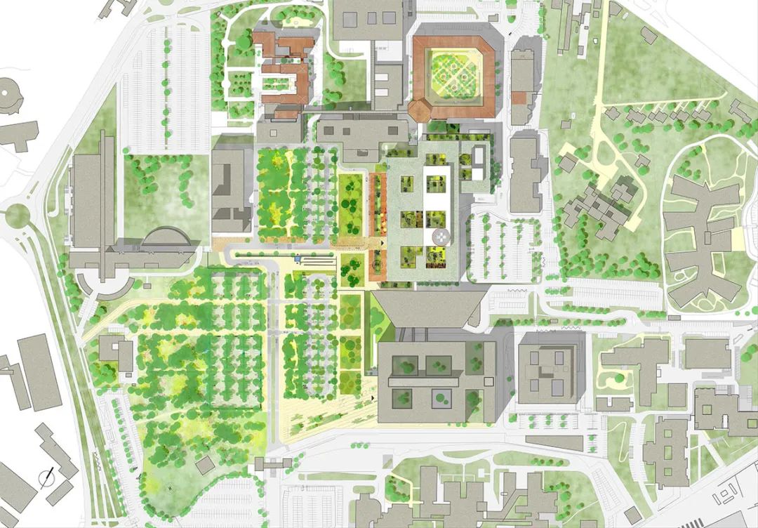 该项目由大型连续平台组成,并被大型露台连接,其特点是可扩展性,将具有多个连接的各种医院功能汇集在同一建筑物。服务空间和依赖空间之间的结构化架构,允许服务的位置多样化并满足新的需求。此外,项目考虑环境、脱碳、可逆性、选择采用可持续材料建造雄心勃勃的建筑系统,如木结构中的生物气候双立面、现场砖块的再利用等。