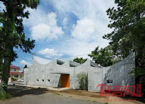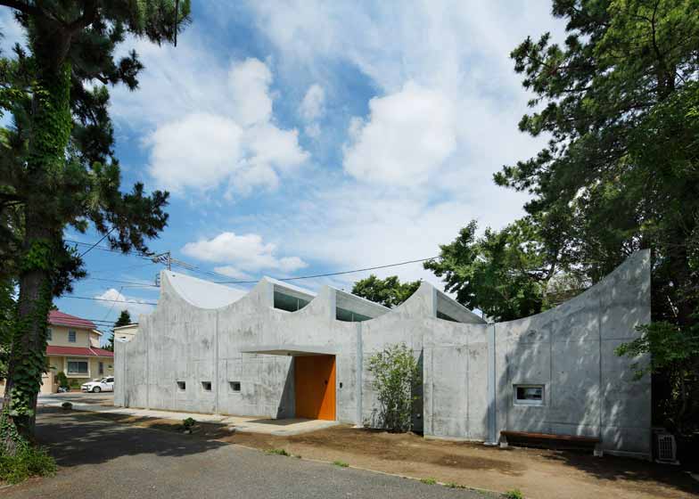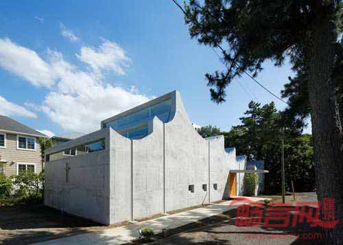 建筑师保坂猛设计了位于日本神奈川县相模原海湾的湘南基督教堂(Shonan Christ Church)。教堂特色是颠倒的筒形天花板、漏斗形窗户、覆盖混凝土墙面的大厅。教堂混凝凝土屋面颇具雕塑感,其单层的构造与周边建筑规模相得益彰。曲面浇筑混凝土屋面包含六个独立的凹面板,这个数字象征了圣经创世纪的天数。