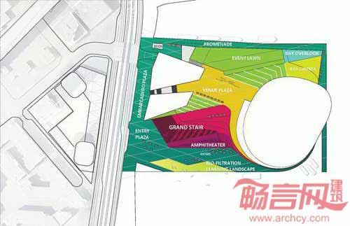 阶梯广场下方,设置了630车位的停车库,广场提供了面向海湾的视野。体育场设有17000个座位,相比球队自1970年代使用的Oracle球场,座位数目减少了2000个。项目将筹集私募基金,预计在2017-2018NBA赛季前完工。