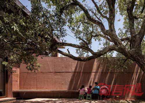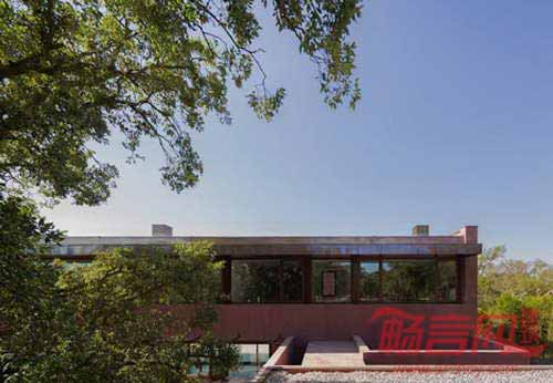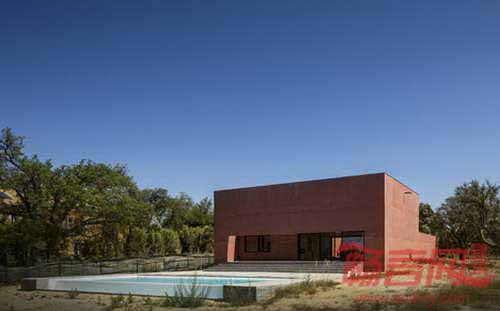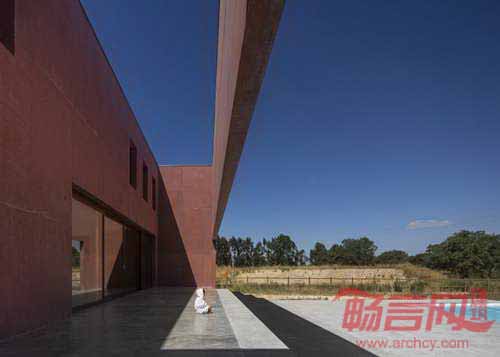 葡萄牙建筑师Miguel Marcelino完成了一个乡间住宅建造,建筑具有红色混凝土墙和三个分隔的庭院。