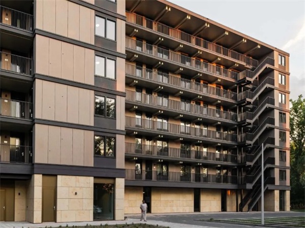 鹿特丹首个大型木结构住宅建筑Valckensteyn近日已正式交付。该项目由Powerhouse Company设计,受鹿特丹住房协会Woonstad Rotterdam委托,将创新木结构建造技术与重磅社会使命相结合,在标志性的战后社区提供82套保障性租赁住宅。
