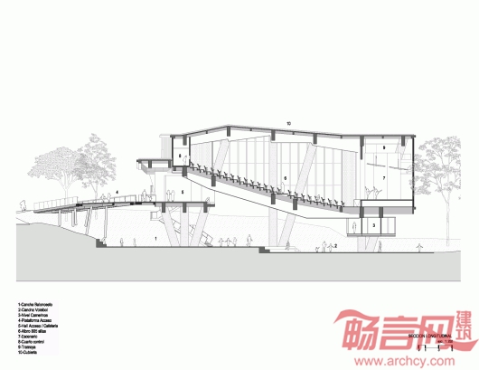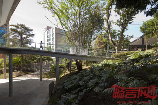 Medellin学校礼堂设计基于场地的分析、不同等级的活动类型,设计旨在对已有树木和体育设施产生较小的影响。礼堂内部,建筑节点由周边景观界定,包括树顶天棚覆盖了交通区域,礼堂室内始终同外部绿化植被紧密相连。项目超越了传统的礼堂设计,覆盖环境、文化等设施,为学校教育提供支持。