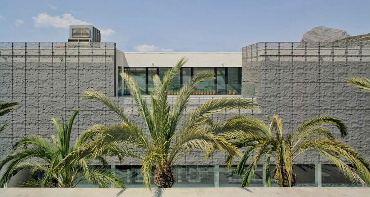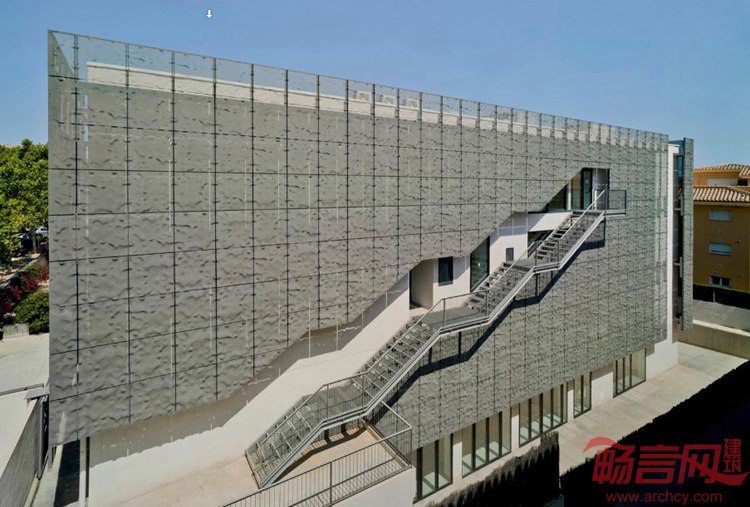 Singular Studio设计了西班牙Alicante公共图书馆和社会文化中心。项目坐落于Javea临近港口的滨海社区,因此在实施一系列建筑方法后,设计师最终采用了和海洋相关的理念。金属板具有三维形象,模仿了海平面的运动。外立面的处理如同覆盖整个结构的轻盈的建筑表皮,在不影响一层平面的条件下,彰显了结构的轻质。