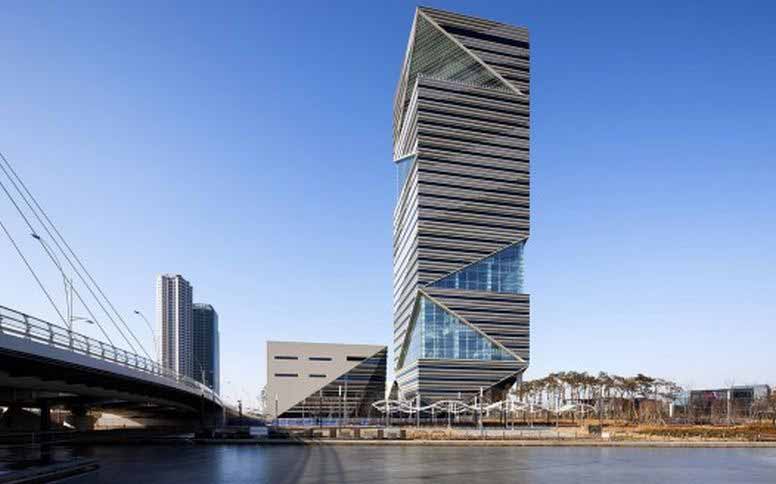 仁川Songdo G TOWER办公楼由HAEAHN建筑事务所设计,项目面积为8.6万平米。项目坐落于仁川自由经济区,设计旨在创造具有象征性和生态性的新政府办公楼。四座裙楼高达六层,屋顶花园反向坡道深达25米,创造了个性鲜明、创意十足的设计元素。建筑外立面添加了许多对角线造型线条,增添了建筑的动感。