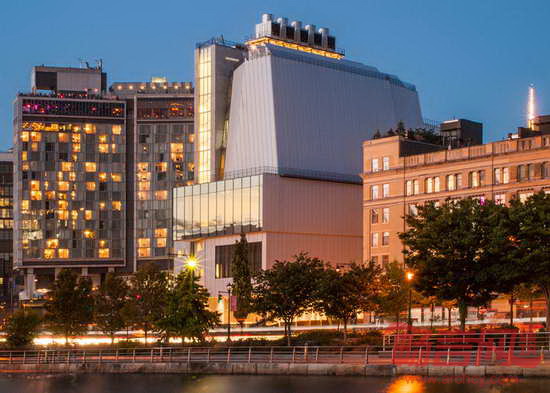 伦佐·皮亚诺设计的纽约惠特尼博物馆日前完工。项目位于纽约曼哈顿肉类加工区,是一座不对称的钢铁混凝土建筑。项目被构想成艺术家实验室,共有九层,设有室内外场馆,保护实验室和纽约最大的无柱展示空间。项目位置介于高线公园和哈德逊河之间。雕塑般的外形如同一系列不同大小的方体堆砌而成,设计师希望表现其所在的仓库、铁路和工业建筑组成的环境背景。