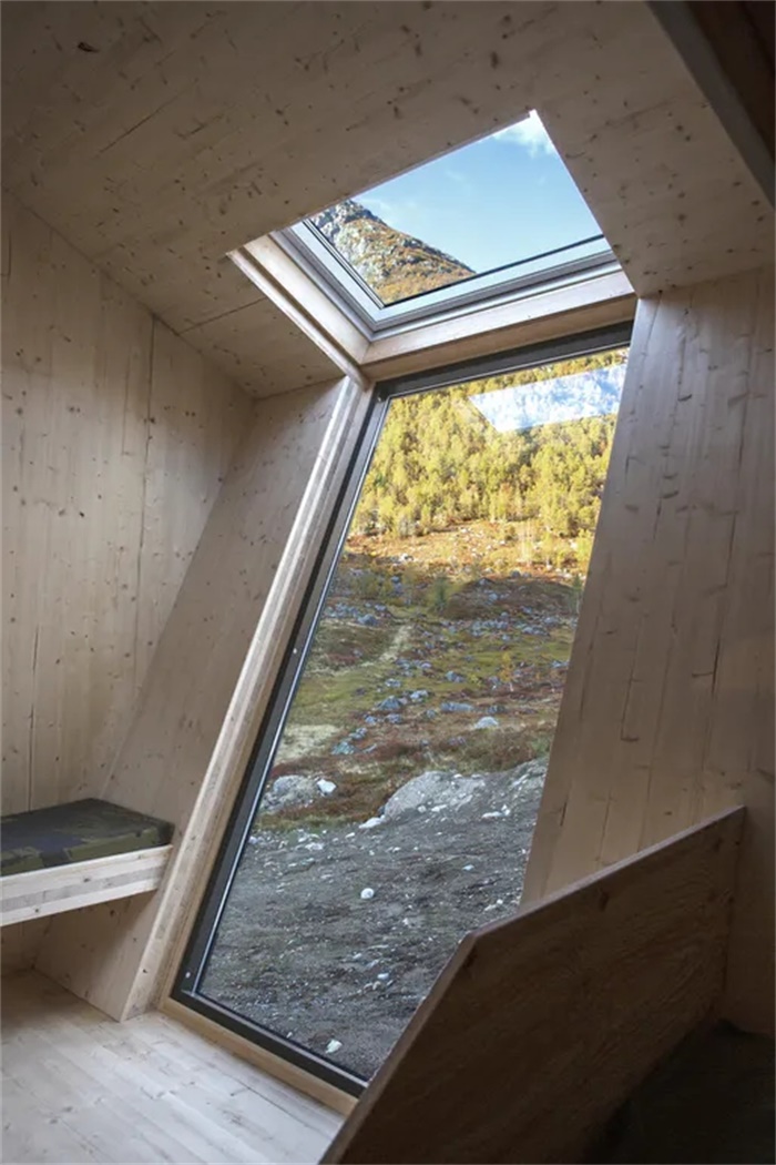 Snohetta的设计包括九个新建造,每座都是五边形,由胶合层框架制成,覆盖着交叉层压木材以及矿石松木。房屋外墙呈鸟嘴状,以抵御从谷底升起的强风。