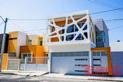 Gerardo Ars建筑事务所设计的“3”住宅位于墨西哥Veracruz港口的Boca del Rio镇一块不规则场地上,场地尺寸是22×62英尺。业主要求为自己的孩子提供生活空间,这一要求奠定了设计基础。住宅布局关键在于三个方正模块,每个空间均为满足业主夫妇以及三个孩子的需求而设计。一层提供公共和私人空间,包括玄关、车库、起居室、餐厅、厨房和主卧。同时,二层平均地为孩子提供卧室房间,使他们享有独立起居场所。