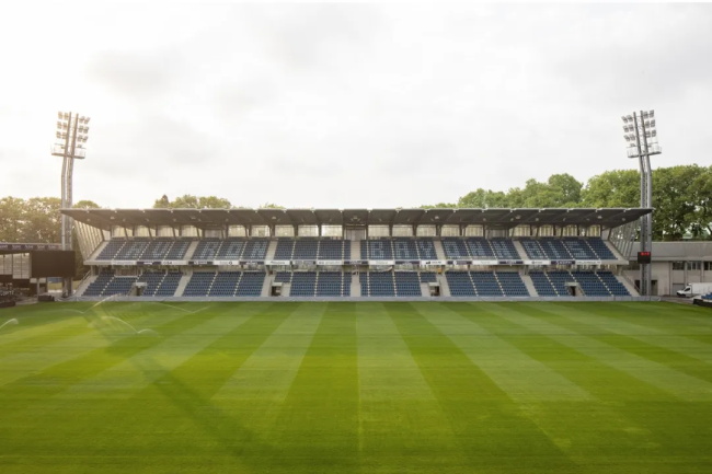 为打破传统看台将垂直交通设施(如楼梯、电梯等)内置于结构与看台层深部的常规设计模式,本项目将通往座席的楼梯与步道设置于建筑外部。这些设施依托纤细如蛛网的金属结构,在公园树木的枝叶间蜿蜒攀升。服务于入口区域的广场与堤岸,因周边丰富的建筑景观与植被层次而充满活力,同时透过看台窗户隐约可见的内部活动场景,进一步构建起体育场与城市之间的有机联系。此举旨在让看台具备承载多样化活动的潜力,打造可供人们聚集、举办节庆活动与会议的场所,从而将其使用场景拓展至橄榄球赛事之外。