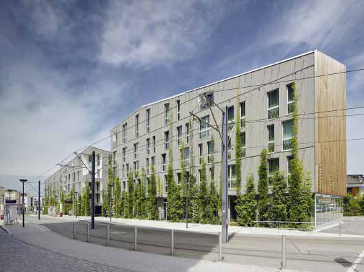 项目目的是设计涵盖酒店、商店的住宅单元。项目施工采用木材、混凝土材料,执行了被动式住宅设计标准。