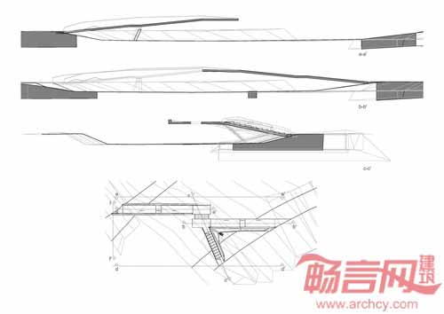项目梁结构灵感来自origami(日本折纸)艺术,当然材料不是纸,而改用了白色混凝土板。桥梁两部分具有不同的结构形式,一部分具有一条16米的悬臂梁,另一部分有Y型几何形态,包含桥面和阶梯,两部分的桥梁总长度超过了60米。