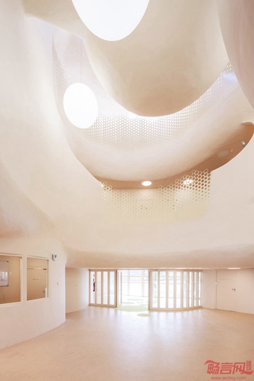 项目位于法国圣但尼,由Paul le Quernec建筑事务所设计。这座教育综合体具有三叶草造型,容纳了幼儿园和小学设施。项目可将儿童从穿尿布的阶段培养成懂得美学、科学、地理和阅读的少年。不同的年龄阶段要求不同的建筑设计。建筑理念利于人类大脑半球开发,虽然对称,但在重要功能方面相差很大。项目包含六个部分,由共同的中央大厅相连接。三个户外空间包含入口、幼儿园操场和小学操场;三个室内区域包括幼儿园和小学教学空间以及紧凑的走廊,内外区域的连接过渡创造了良好的视野和朝向。