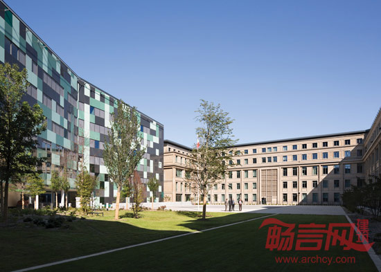 项目分为三个部分,东边为翻新的建筑结构,西边新建的大楼内有办公区和商店,中部是一个六边形的空地,由许多高级军官办公室和作战指挥部环绕。与中部区域相邻的是一座经过复建并赋予了新的功能的古老建筑。