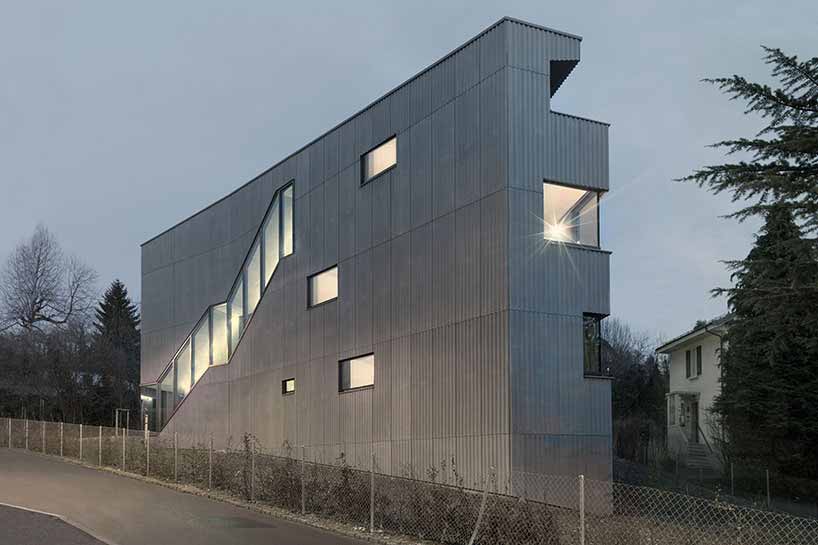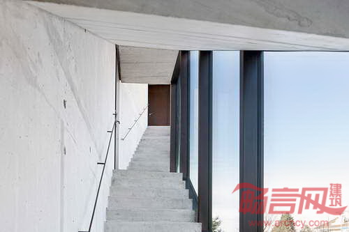 Local Architecture建筑事务所设计了位于瑞士洛桑附近的Rovereaz住宅。项目坐落于Chailly住宅区和Rovereaz乡村庄园之间的一块绿树密布的山坡上。建筑南面设有一列长长的玻璃窗,面朝日内瓦湖和阿尔卑斯山。露台错落有致,形成公寓向室外的延伸。每套公寓均有简洁的布局,独特的几何方案构成流畅的空间,为住户提供了多重视野。透明楼梯打破了沉闷的围护外立面,增添了一丝生气。流通空间采用清水混凝土,产生的空间通向不同楼层的起居区,所有服务功能均位于建筑一侧。