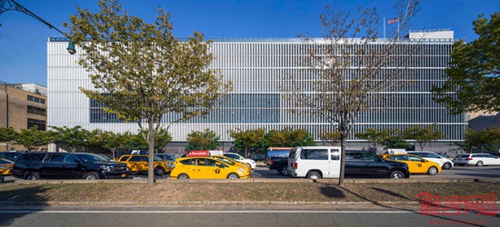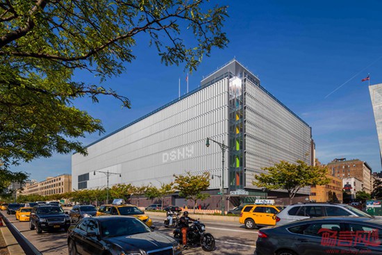 Dattner工作室设计了位于纽约的停车场项目。这是一座矩形方正建筑,外层覆盖了金属板和混凝土材料,业主是纽约卫生部门。项目坐落于西曼哈顿的一块醒目场地上,属于Tribeca社区北端。综合项目包含两个设施,分别是一座混合功能建筑,涵盖办公和环卫车辆设施,另一个是道路用盐的仓储空间。两座建筑隔街而望。