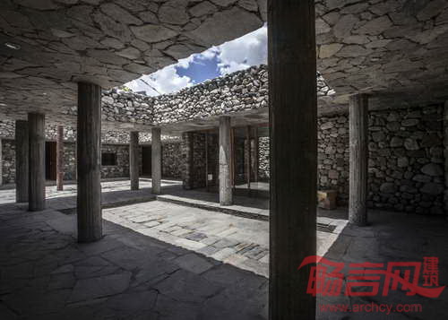 韩国Archium工作室设计了位于尼泊尔Jomsom城的一个广播台。项目采用当地石材,形成庭院和走廊。建筑师 Kim In-cheurl设计了Mustang广播社区,这个广播台于去年开始使用,为尼泊尔西北部偏远的Mustang区域居民游客服务。项目位于Kali Gandaki河岸附近,这里海拔超过3000米,施工采用当地材料和人力。为了防止员工和游客不受大风危害,建筑采用当地称为“Gneiss”的石材,堆砌其围墙,使广播站融入布满岩石的周边环境。