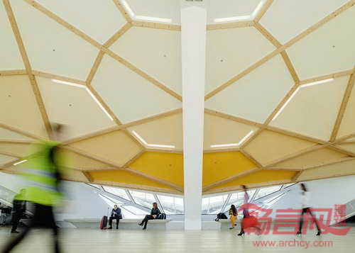 由荷兰UNStudio建筑工作室设计的Kutaisi国际机场一角被设计成利用定位的明艳红色。UNStudio建筑工作室设计的航站楼具有很大跨度,创建了利于导航的无阻视野,红色的一隅成为辨识度的焦点。设计师表示,“新机场的设计体现了场地的特色,这一特色会令旅行者感到亲切。航站楼建筑大跨度、开放空间和高屋顶令离开和返回的旅程变得特别,这种建筑姿态在过去的火车站建筑中非常常见。”航站楼内部,天花板上一个木梁网格结构吸引了人们的视线,创立了旅客聚集的中心。
