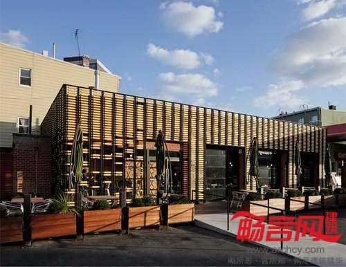项目位于纽约皇后区,甲方希望拆除原有加油站车库,在原址上建造一个具有活力的文化活动场所。纽约ODA建筑事务所保留了原有建筑结构,设计出这个“面包盒咖啡馆”,在原建筑基础上进行了重复使用型工程改造。