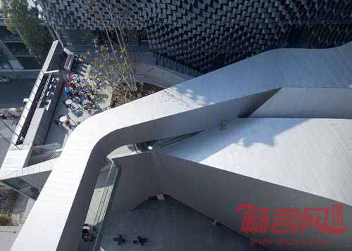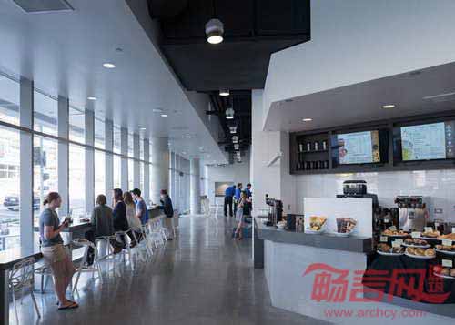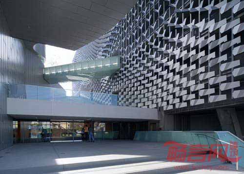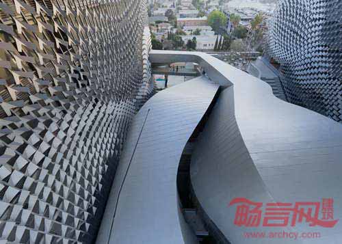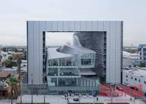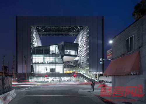 Morphosis建筑事务所为Emerson艺术学院好莱坞校区设计了一座由方形外框环绕的弧形教室群项目。项目坐落于洛杉矶日落大道娱乐产业区核心地带,Emerson学院洛杉矶分校将容纳来自波士顿创意艺术和通信学校的超过200名本科生。项目外层类似框架的结构容纳了10层学生公寓,中央的弧形结构包含教学设施和教工行政场所,其间是若干露台和天桥。设计师Thom Mayne表示,“项目设施旨在扩展教育的社会、交流功能。无论是公共空间还是可持续设计方面,我们都希望创造思维更开放宽广的社区。”项目东西外立面包含玻璃幕墙,并添加了智能遮阳系统,水平扇叶根据光线、温度和太阳角度自动调整。