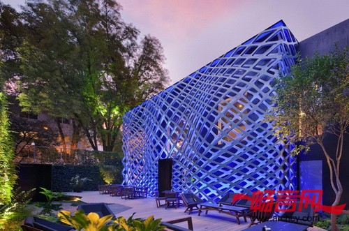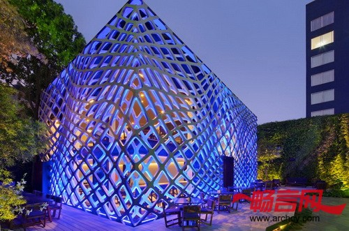 餐馆花纹式的幕墙和漂亮的景观设计让这里成为了里面参观的外面延伸区域,这让室内外就有机的连接了起来。