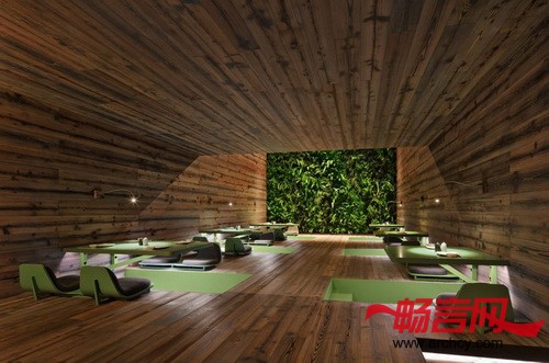 站在餐馆门外,你就会感觉到一种非常亲密、非常微妙的感觉,当你进入餐馆之后,你就会发现你站在了一个露台上,这里是一个非常惬意的用餐区域,它的周围有自然植物装饰。