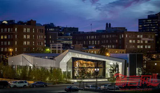项目是一座单层建筑,旨在用于公司领导层聚集活动。这也是占地23公顷、位于码头区域的波士顿全球投资者开发计划的首个项目,该计划亦称“海港广场”。建筑坐落于波士顿创新区中心,在1000公顷土地上矗立着若干历史工业建筑。项目建筑面积12000平方英尺,除了用于高管交流外,还涵盖对外开放的餐厅,灵活用途的聚集区(250个座位),设有休息椅和工作台的空间,零售商店,展览区。