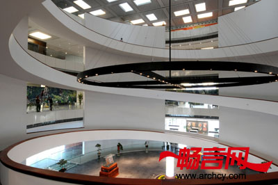 经由螺旋形楼梯,游客可以到达上一层的展馆。与整个博物馆的设计特点一样,在螺旋形楼梯上,游客在走路的同时,还能观看入馆大厅和各展厅的展品。博物馆的一至三层都用作展览,四层里有会议室、研究室、办公室和图书馆。馆内的空地可以举办大型的展会。