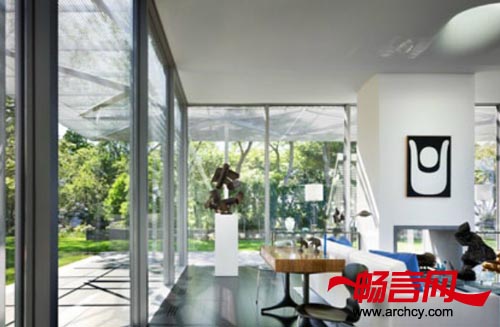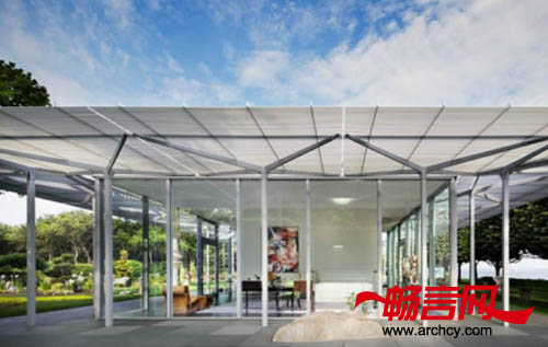 它不仅仅是一座可以欣赏美丽的水景、花园风景和天空的透明住宅,它更是一座极具艺术性的玻璃艺术品。
