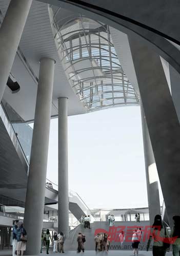 大众文化和商业中心的主要特点是大众化和公开化。其南部是完全开放的可视部分,展示出该建筑的内部结构。玻璃切割,钛外墙的戏剧院位于建筑物的上方。以上特点使该建筑形成了既集中又分散的结构。