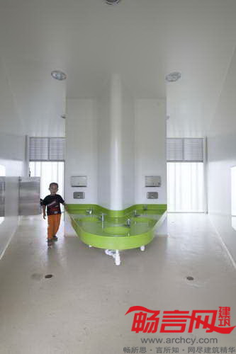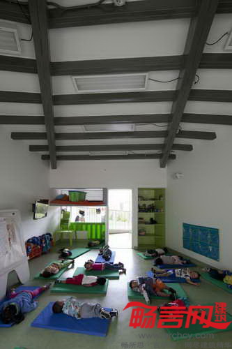 通过使用灵活模块设计手法,设计师将幼儿园设计成一个两层紧凑型建筑;建筑顶层供较小的儿童使用,较大的儿童在底层学习;同时,还开辟出一块长露台,供孩子们嬉戏玩耍、观赏风景。