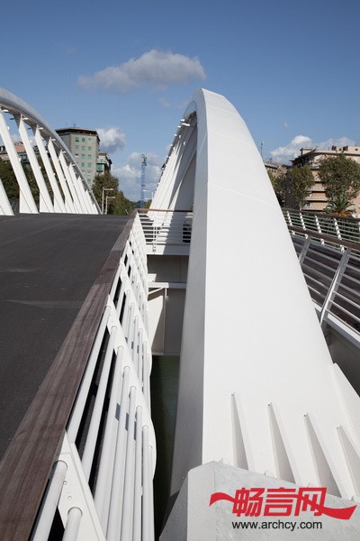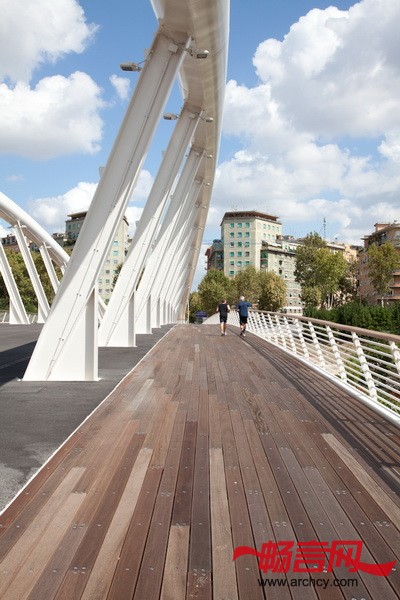 罗马市长Giovanni Alemanno近日为Ponte della Musica桥举行了揭秘仪式,这座桥是一千年来首次将位于Monte Mario西岸的奥林匹克体育场和Quartiere Flaminio连接以来。Ponte della Musica桥被设计成为一个开放的公共区域,可以进行节日庆典、会展和市集,未来还会是有轨电车和巴士的必经之地。该项目由Buro Happold建筑事务所设计。