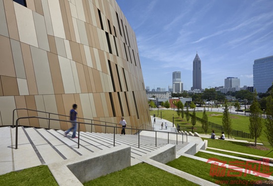 HOK霍克建筑设计了美国亚特兰大的国家人权中心。项目理念是营造“行动空间”,设计灵感来自全世界范围内的民权相关建筑,例如华盛顿国家华盛顿国家广场和开罗塔希尔广场。两面醒目的曲面墙壁赋予中心标志性外形。项目临近可口可乐世界和佐治亚海洋馆。宽阔的广场迎接四面八方的游客。