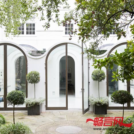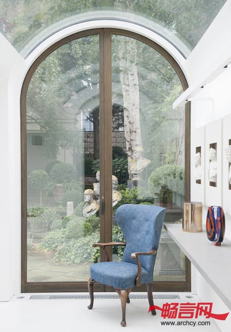 AMA建筑事务所对伦敦W2独户住宅进行了重新设计,客户要求AMA参考维多利亚音乐学校的重新设计方案对住宅进行设计。维多利亚音乐学校由三个木框的丙烯酸玻璃圆桶形穹窿组成。