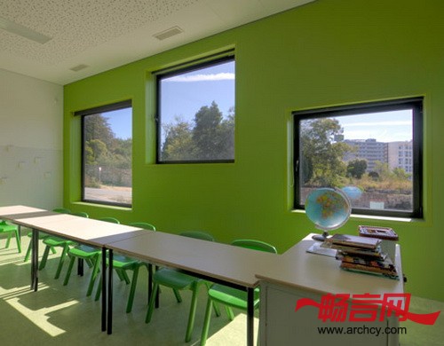安塔斯学校的建筑由几部分组成,每一部分都是一个功能区,是根据室内布局、功能、形状、外观等因素而划分的,形成了一个独具特色的建筑。