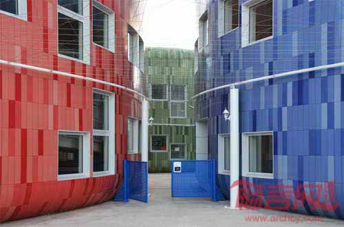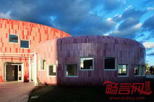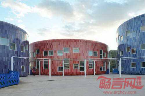 Foursquare建筑事务所、M2 Distribucion公司同Natucer瓷砖制造商合作,共同创造了具有彩色表皮的巴伦西亚儿童创新中心。项目属于实验性教育综合体,要求建筑形式能够鼓励儿童创造性和社会参与性,同时要求建筑融入可持续性科技。除了圆润的外形外,色彩对营造开拓创新的氛围同样十分重要。