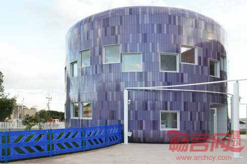 各个圆筒结构均覆盖了一系列彩色瓷砖。光亮的瓷砖经过精细时间控制的烧制周期,从而产生各立面所需的精确弧度。在2013年CEVISMA贸易博览会上,项目作为陶瓷面砖使用范例进行了展示,呈现了瓷砖制造工艺和设计潜能方面前所未见的科技创新。光可鉴人的瓷砖通过铝合金边框和凹槽安装在壁面上。